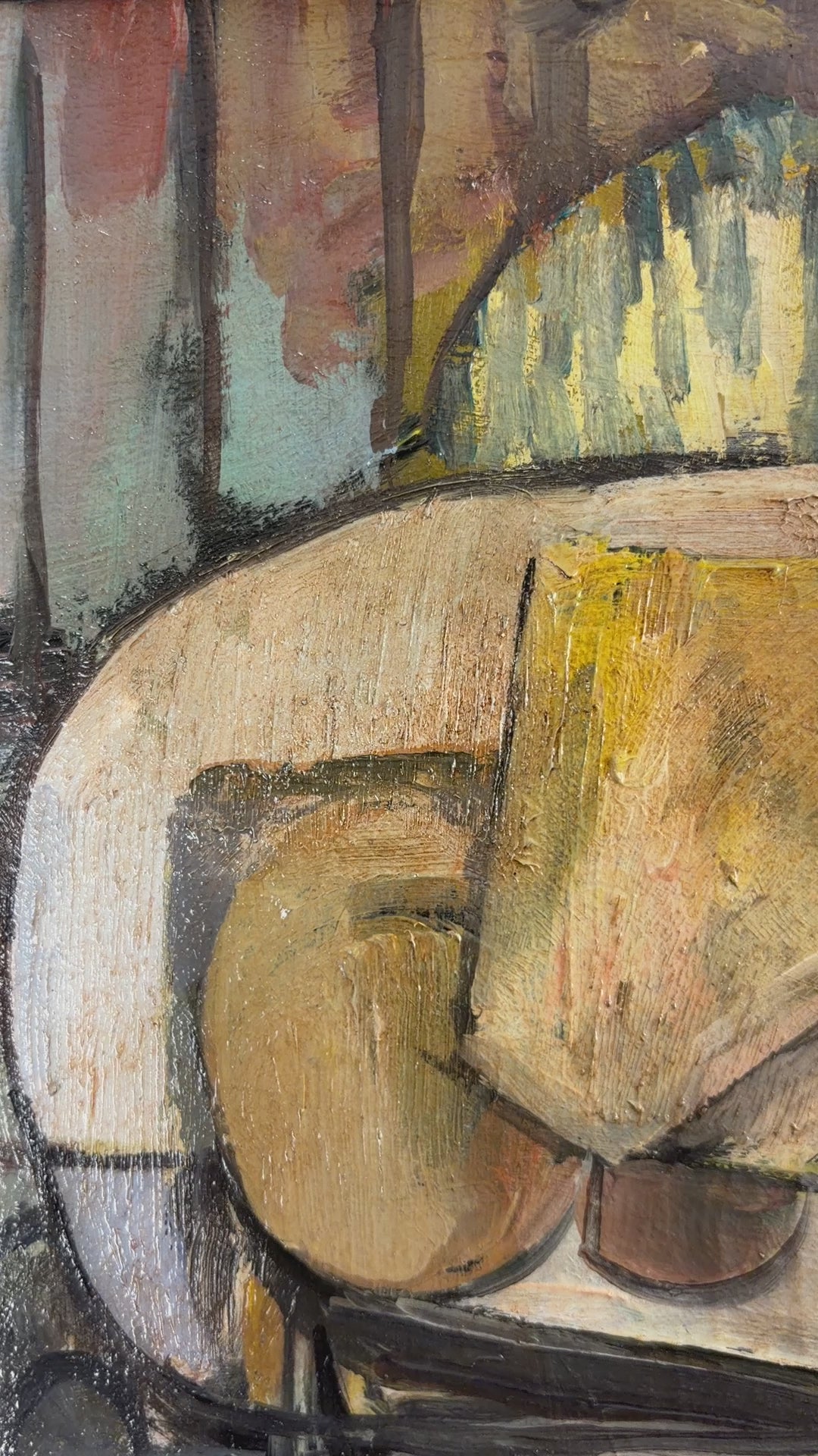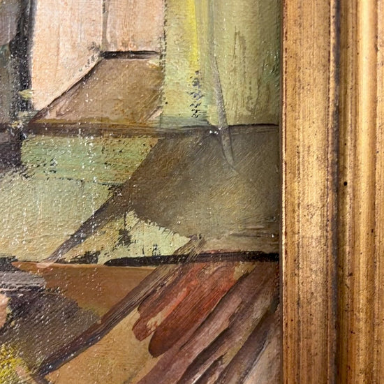 Découvrez une huile sur toile cubiste expressive de Desiderius Orban, artiste hungaro-australien de renom. Orban était membre du prestigieux groupe d'artistes « Les Huit » à Budapest et un pionnier de l'art moderne en Hongrie. Il a reçu la médaille d'or à l'Exposition internationale de Barcelone en 1929 et a été fait Officier de l'Ordre de l'Empire britannique (OBE) en 1975 pour services rendus à l'art et à la culture.