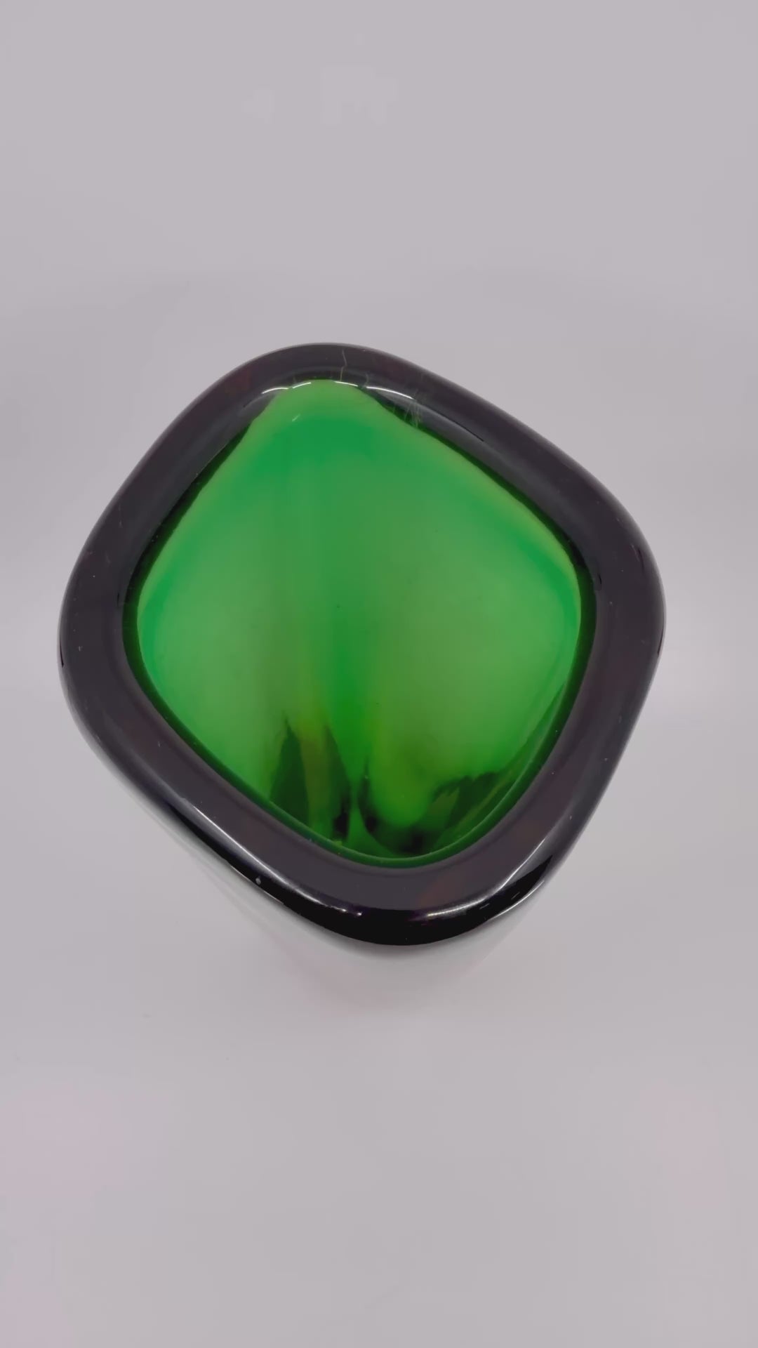 - Matériau : verre épais avec doublure verte et inclusions de verre ambré