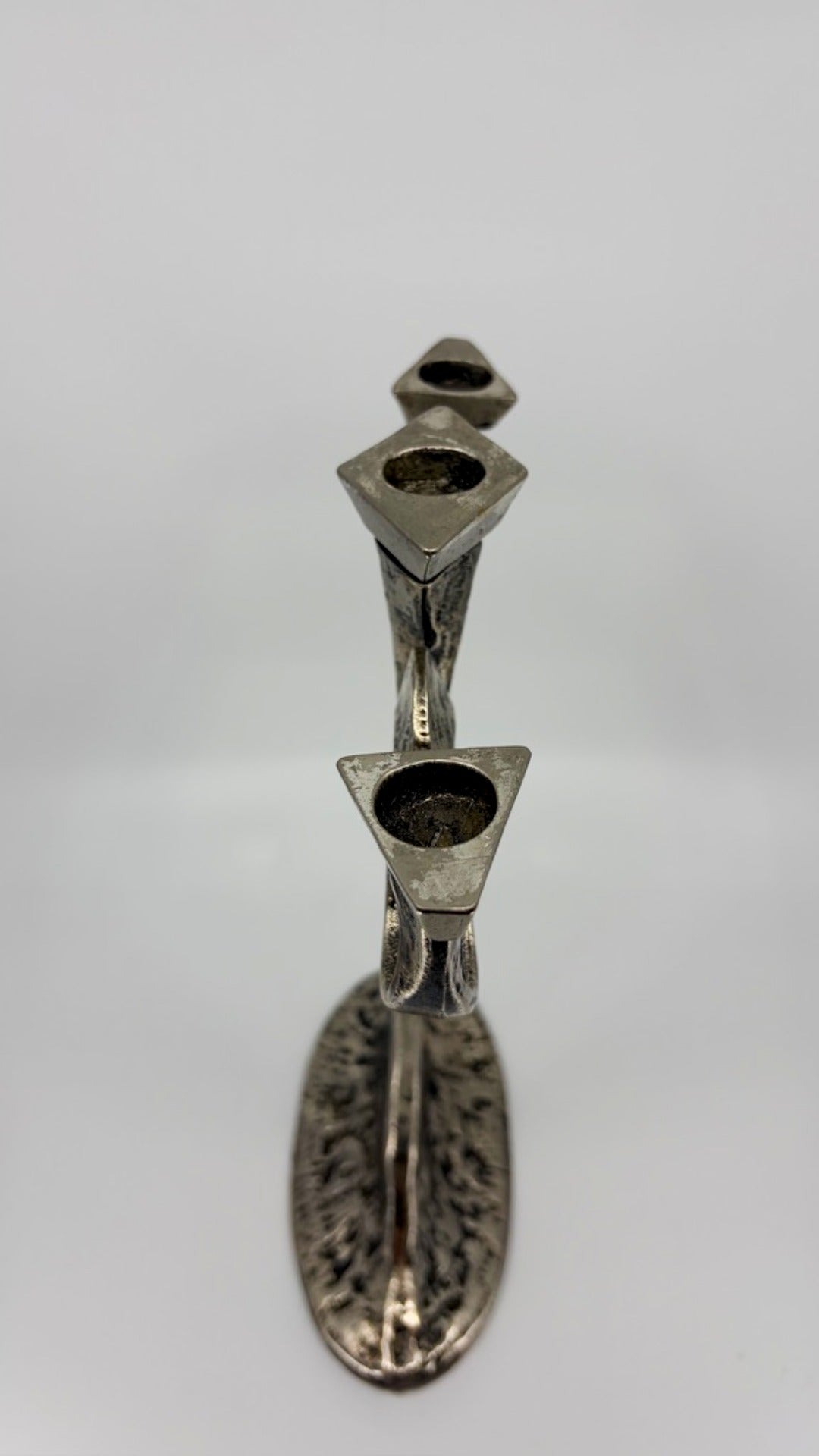 Dieser elegante dreiarmige Leuchter stammt aus dem Atelier Rougeau und verkörpert die raffinierte Designsprache der 1960er Jahre. Das Stück wurde aus patinierter Bronze gefertigt und besticht durch seine zeitlose Formensprache. Mit den Maßen von 30 cm Höhe, 23 cm Breite und 5 cm Tiefe fügt sich dieser französische Klassiker harmonisch in verschiedene Interieurs ein. Das Objekt befindet sich in gutem Zustand und ist ein authentisches Zeugnis französischer Handwerkskunst aus dieser bedeutenden Designepoche.