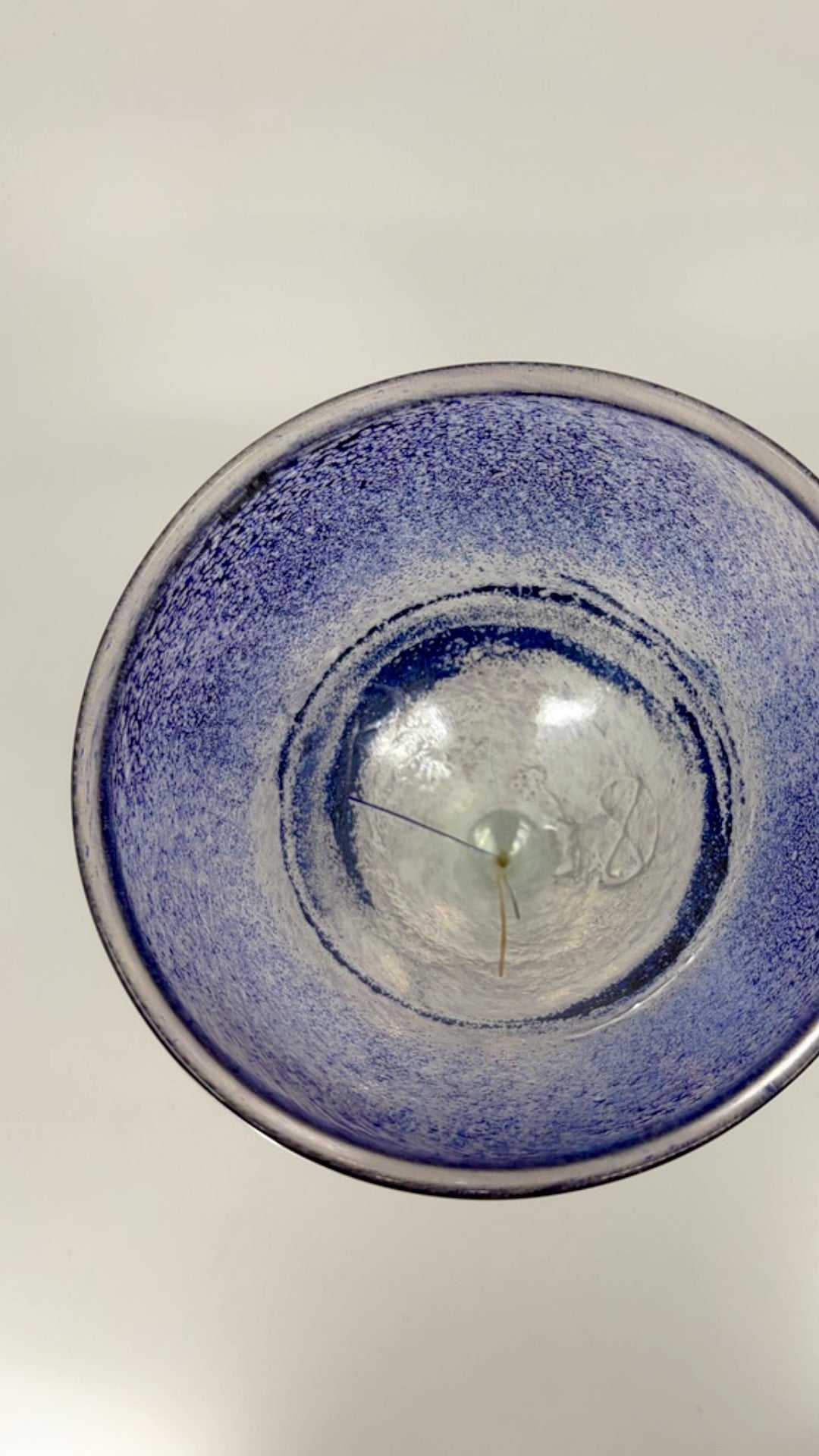 • Besonderheit: Kelchförmige Kristallschale mit Permuttnuancen und integrierten Pudern im Material, die einen gesprenkelten Effekt von Violett und Mauve erzeugen, zarte Farbfäden scheinen in der Materie zu verschwinden und treten an die Oberfläche