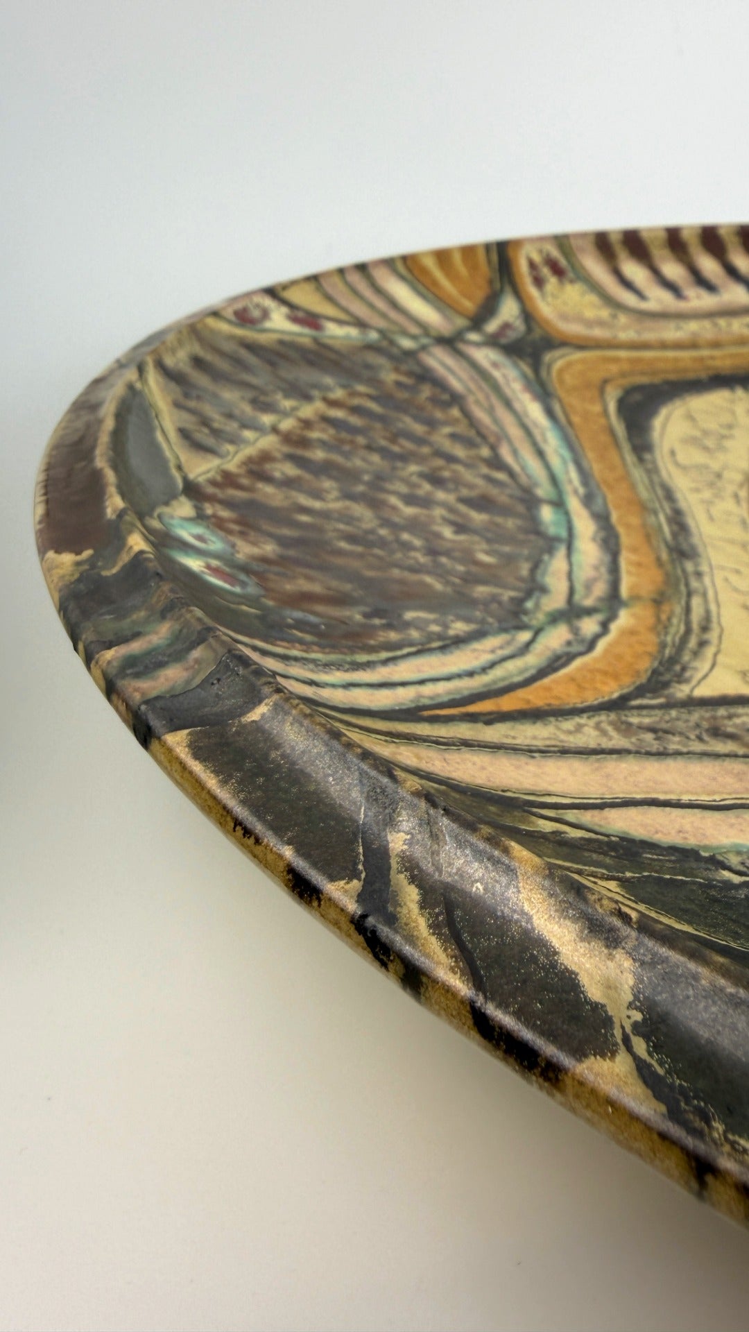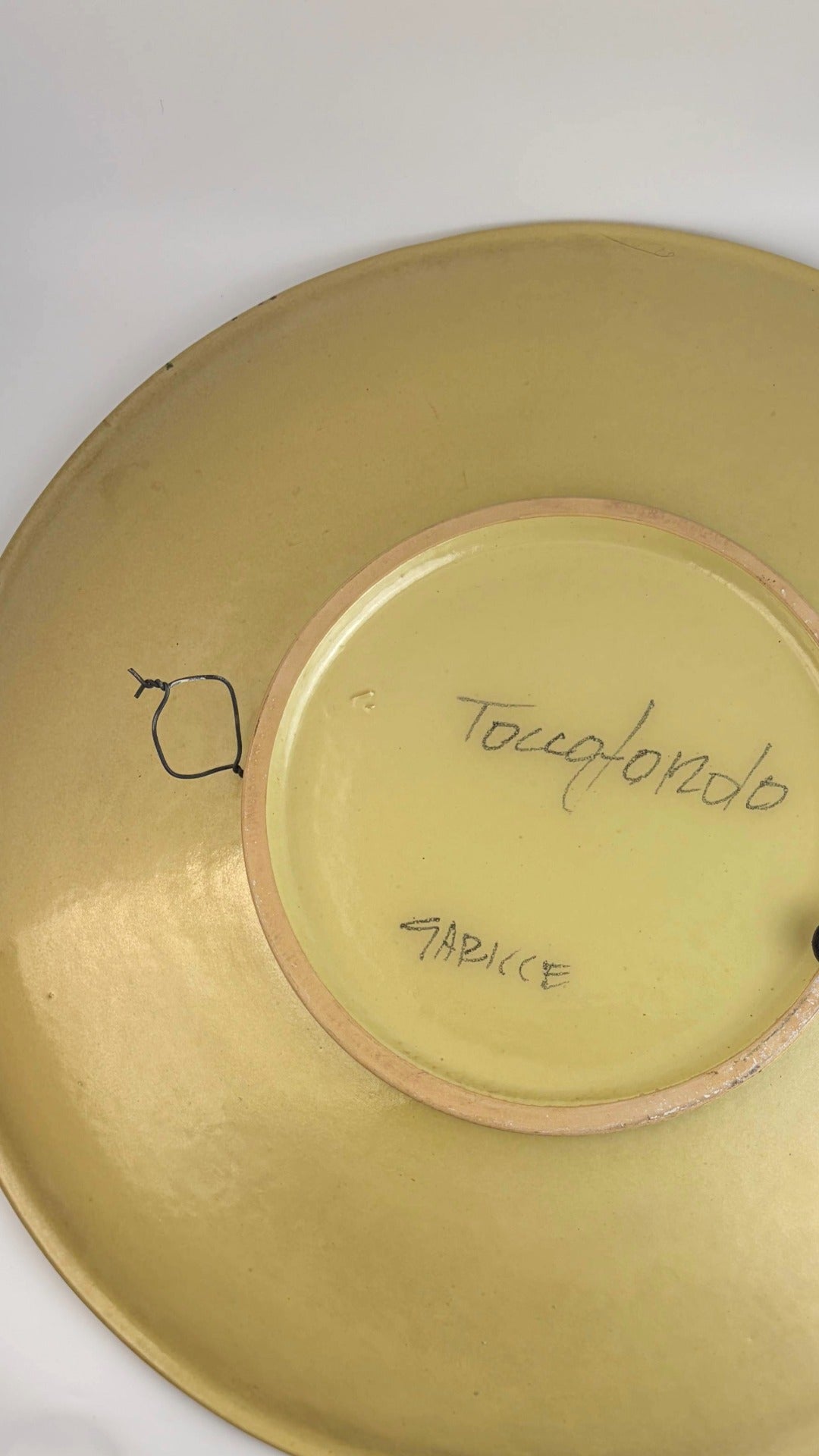 Dieses exquisite Keramikwerk stammt aus der Hand des italienischen Künstlers Giovanni Toccafondo und entstand um 1980 in Gabicce. Das handwerklich gefertigte „Grand Plat" besticht durch seine aufwendige Emaillelackierung und verkörpert die künstlerische Meisterschaft dieser Epoche. Das Stück befindet sich in hervorragendem Zustand und wurde mit großer Sorgfalt bewahrt. Ein zeitloses Kunstobjekt für Sammler, die authentische italienische Keramikkunst schätzen.