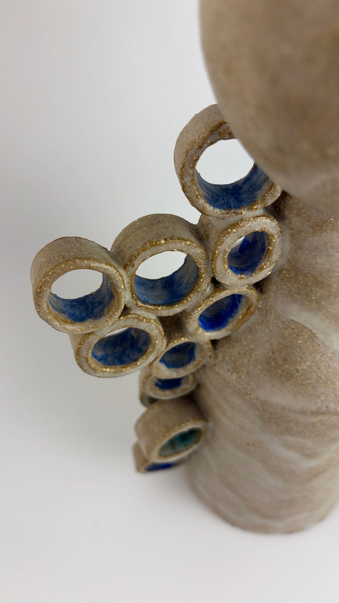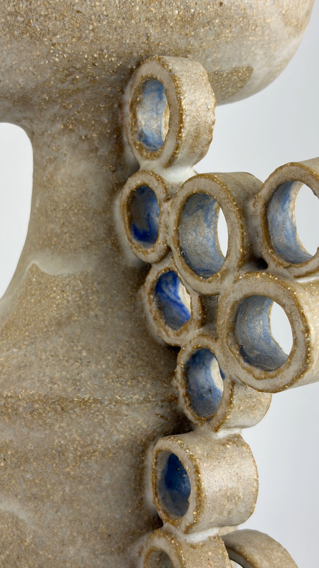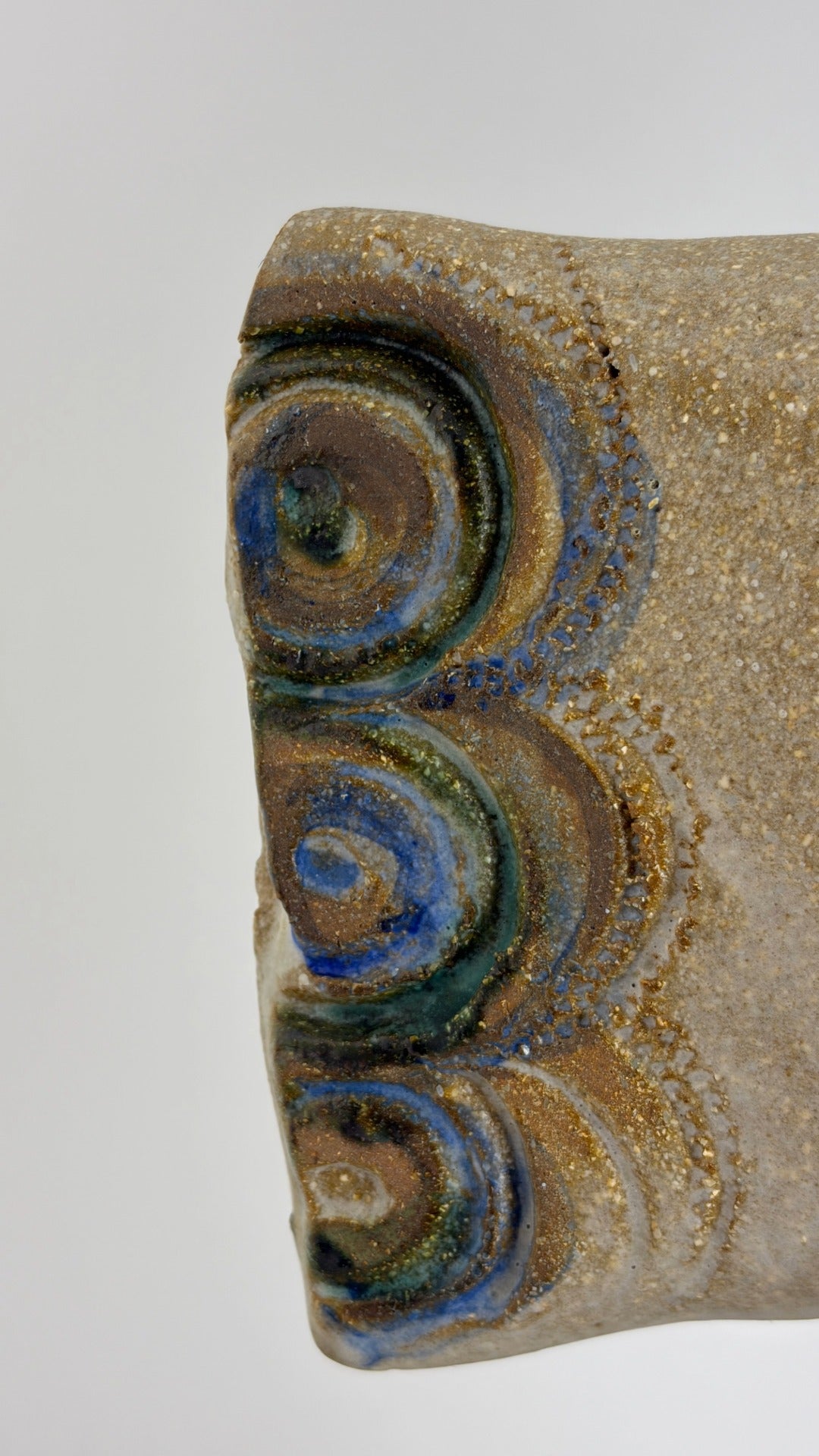 - Material: Keramik mit grauer, kobaltblauer, strukturierter Glasur